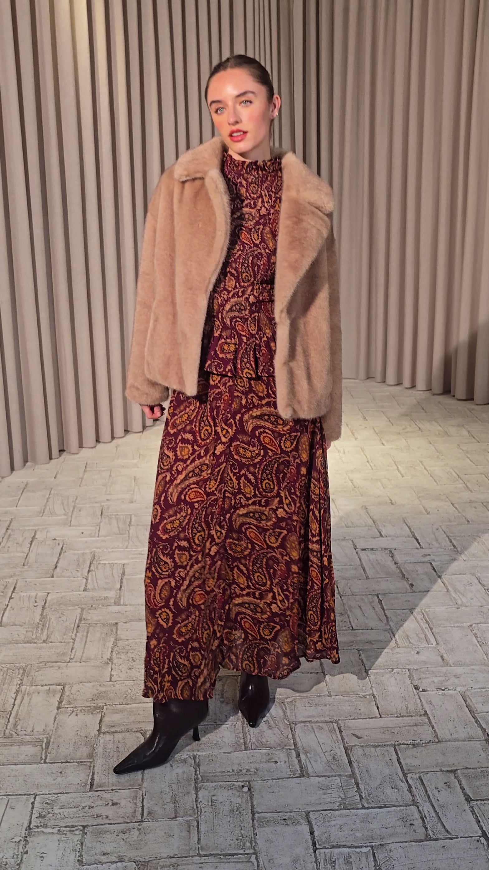- Chaquetón corto faux fur camel